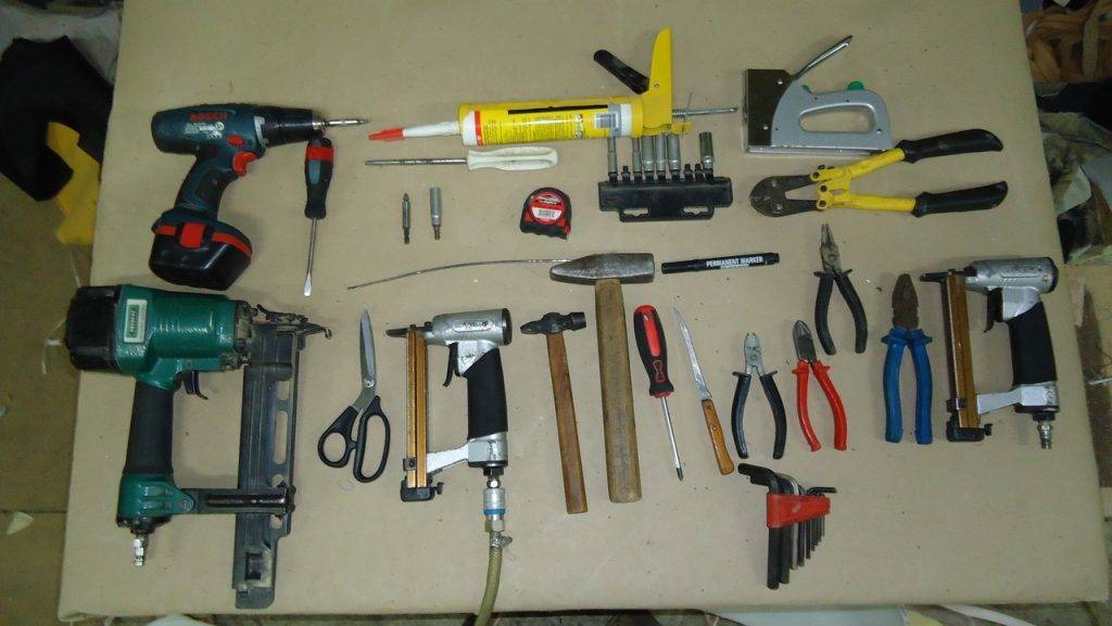 Для работы по перетяжке мягкой мебели будут необходимы следующие инструменты: