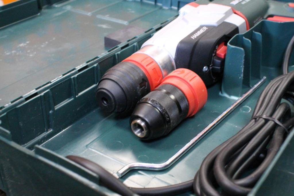 Это лучший перфоратор Метабо для электрика, чтобы выполнять бурение под розетки, распределительные коробки и монтировать щитки. Он продается с двумя патронами для буров и сверл, что дает сразу все необходимое.