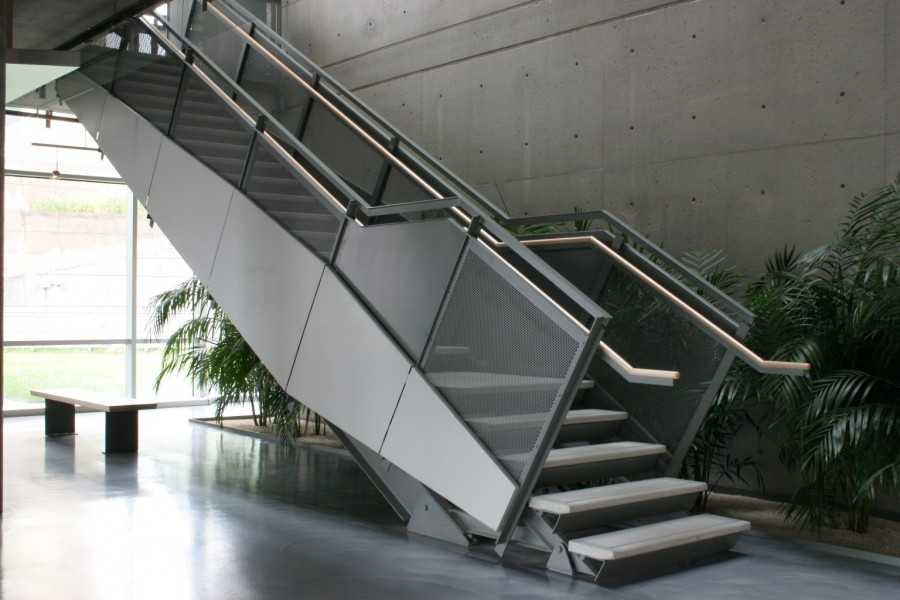 Хребтовые лестницы с периламиБетон и нержавеющая сталь – что может быть долговечнееПростая металлическая лестница