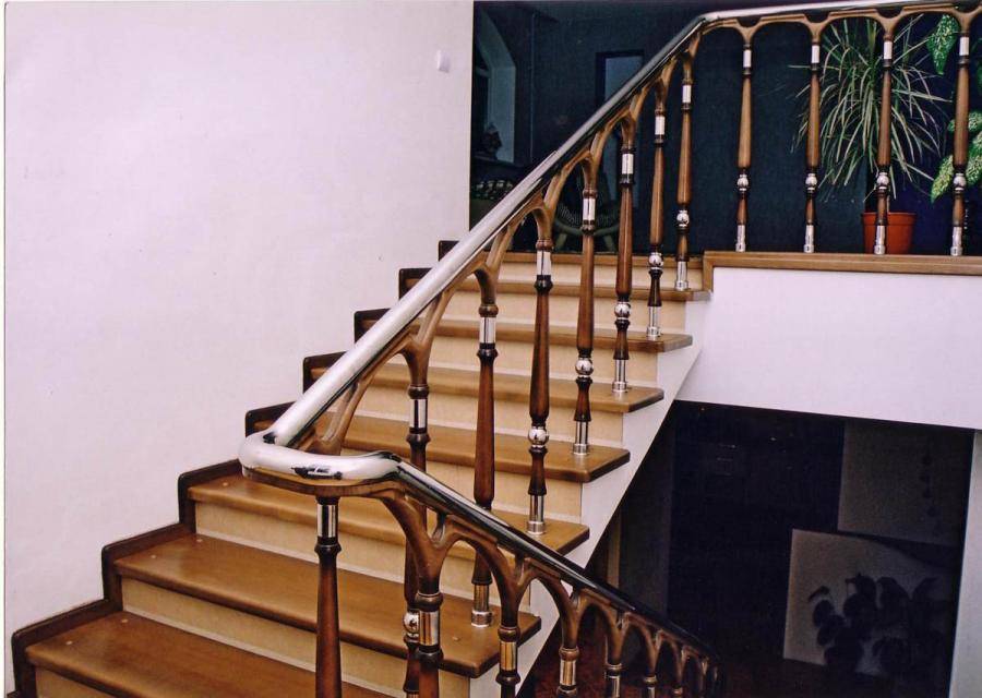 Перила часто выполняются не из однородного материла, используются различные комбинации и сочетания, в которых материалы дополняют друг друга и придают конструкции большую надежность и красивый вид. Рассмотрим несколько распространенных комбинаций материалов для лестничных перил: