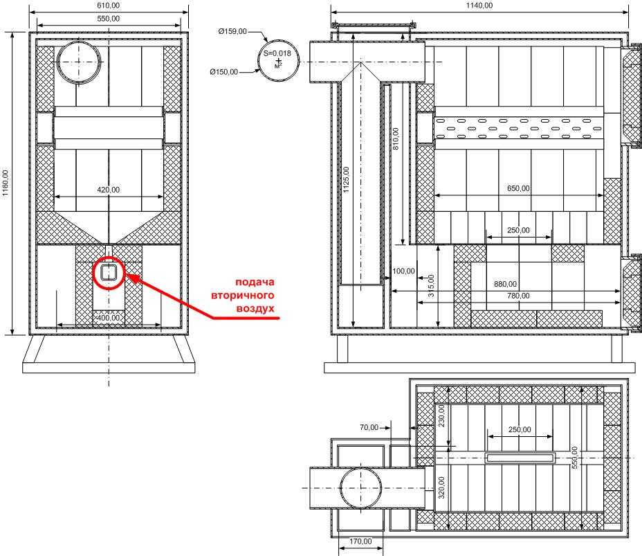 Очень важно при изготовлении пиролизного котла своими руками придерживаться чертежей и схем. Дело в том, что это сложное устройство, в котором будут происходить высокотемпературные процессы