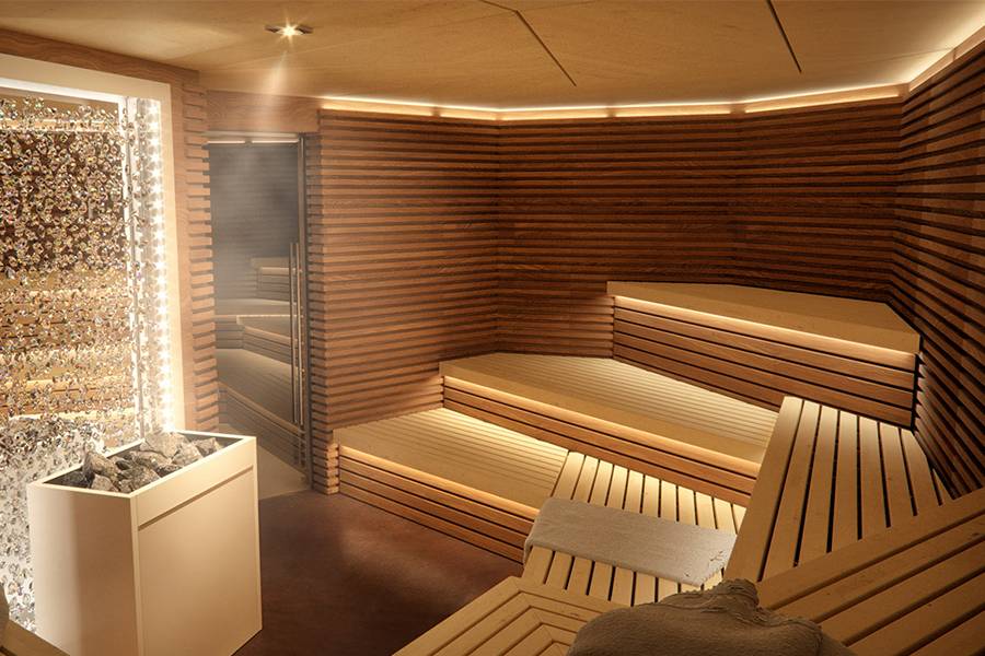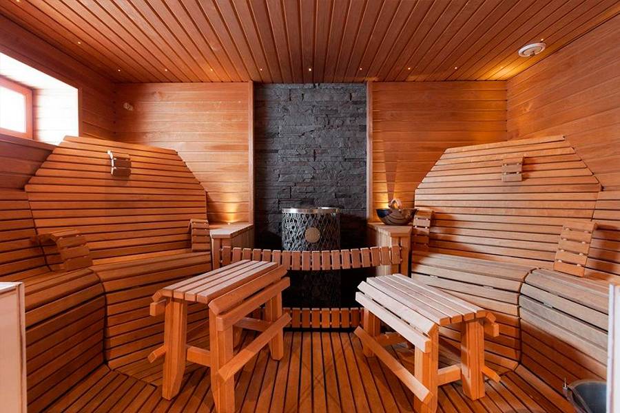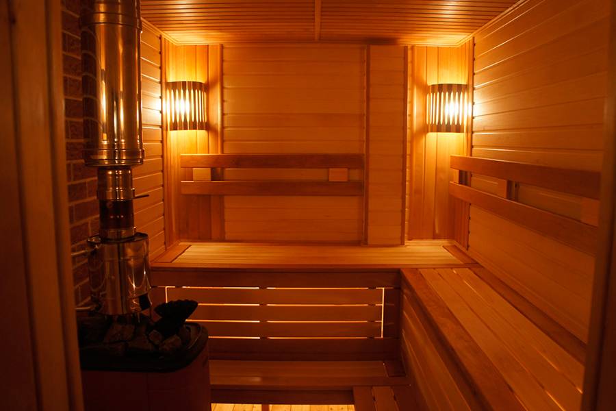 Термометр необходим при наличии в семье человека с сердечными заболеваниями. Ароматы не обязательны, но для поднятия настроения можно приобрести ароматизаторы или использовать еловые ветки. Из помещений необходимыми считаются помывочная, парилка и предбанник. Помещения связывают между собой или выводят в основной коридор на террасу. Гостиную или блок-хаус размещают в крупногабаритных саунах.