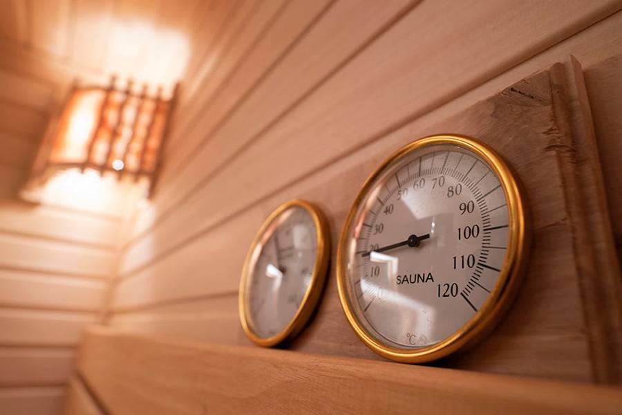 Если влажность уменьшить примерно в два раза, влага начнет интенсивно испаряться с тела человека, а его кожа будет остывать. Для более эффективного контроля у опытных владельцев бани в помещении парилки установлены 2 градусника — один сухой, второй — мокрый. Первый показывает температуру воздуха, а второй, обмотанный снизу кусочком мокрой ткани, демонстрирует температуру поверхности тела пользователей.