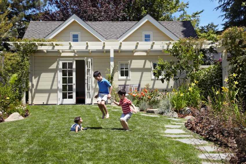 И последний неотъемлемый компонент ИДУ — дорожки и площадки. Ведь нужно где-то ходить и парковаться. Под эти цели допустимо выделять до четверти площади в шесть соток. Если земли у вас вдвое больше, то расход под дорожки можно увеличить до 30 %.