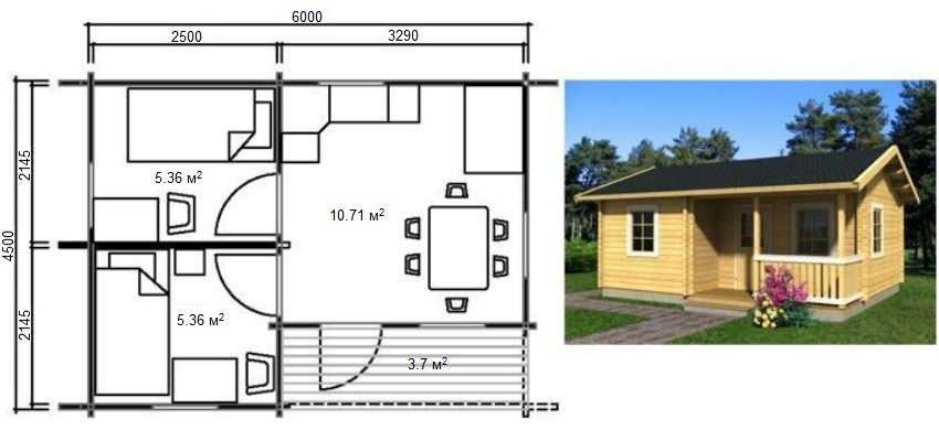 Когда встает вопрос о планировке дома с площадью 6 на 6, следует учитывать, для каких целей он строится. Если это домик для летнего загородного отдыха, то основную часть дома отводят для комнат жилого назначения, а для отдыха оставляют минимальное количество места. Как правило, зону отдыха в дачных домах обустраивают на террасе или рядом с домом на специальной площадке.