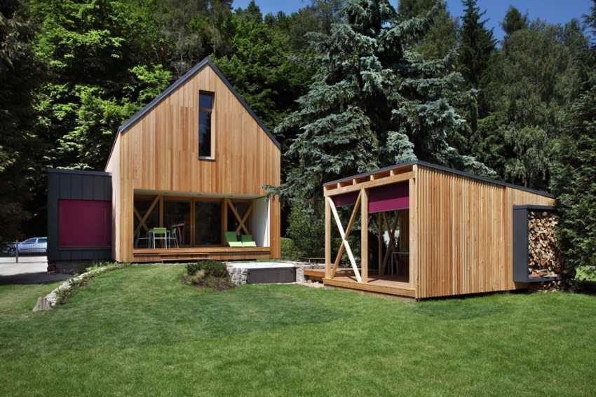 - Универсальные домики для дачи с небольшой площадью, которые могут быть посещаемы в любое время года.