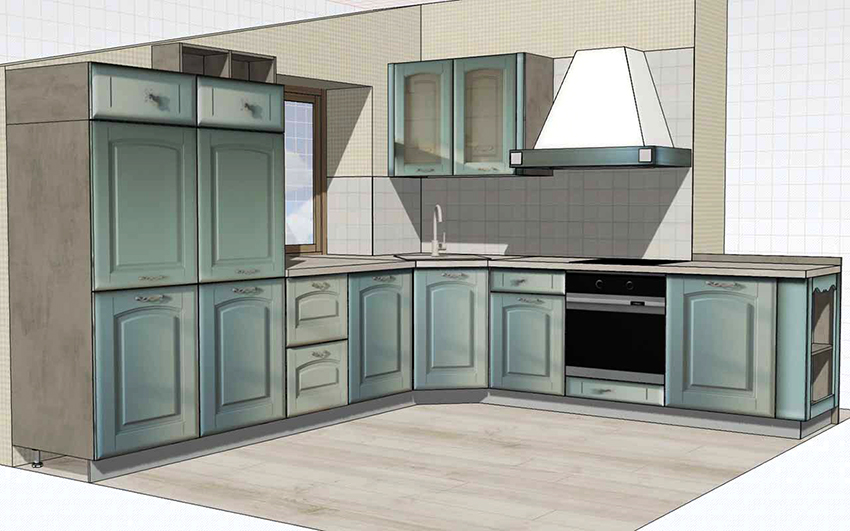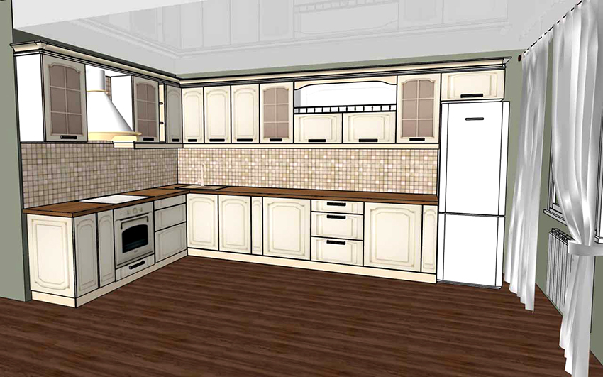 За основу обычно берут один какой-то угол, который ближе всего к будущему гарнитуру. Отдельно составляют проектирование деталей меблировки. Нужно замерить фасады, корпуса и прочее.