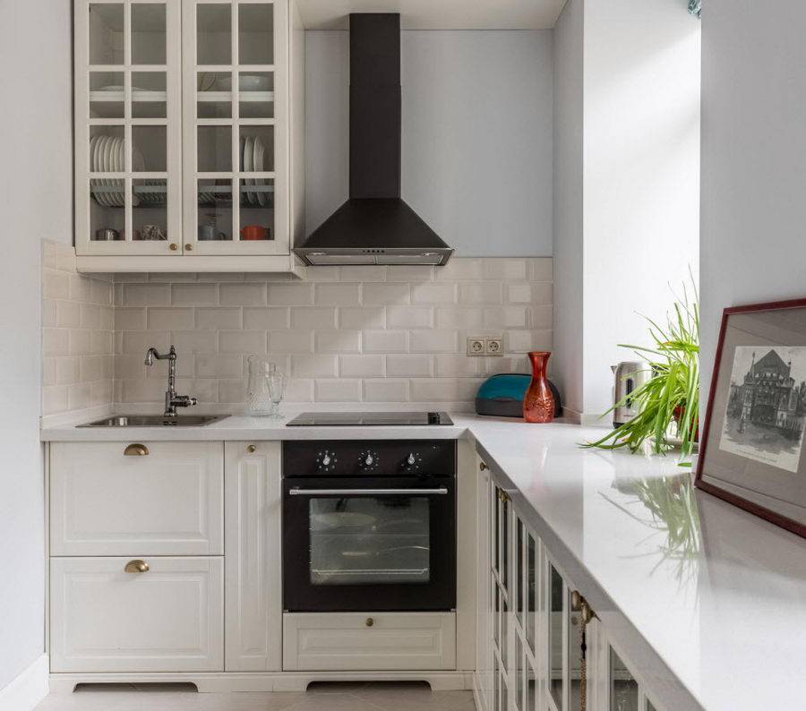 В совсем неудобную маленькую кухню можно купить шкафчики с глубиной не 60 см (это стандарт), а, к примеру, 50 см. И тарелки, кастрюли поместятся, и места будет чуть больше.