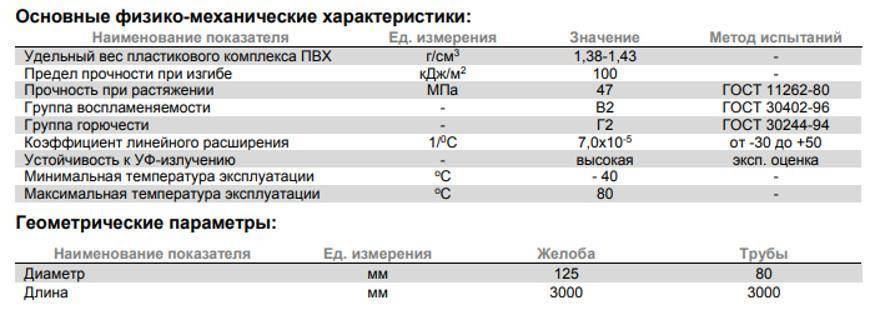 Технические характеристики водосточной системы из ПВХ “Технониколь”