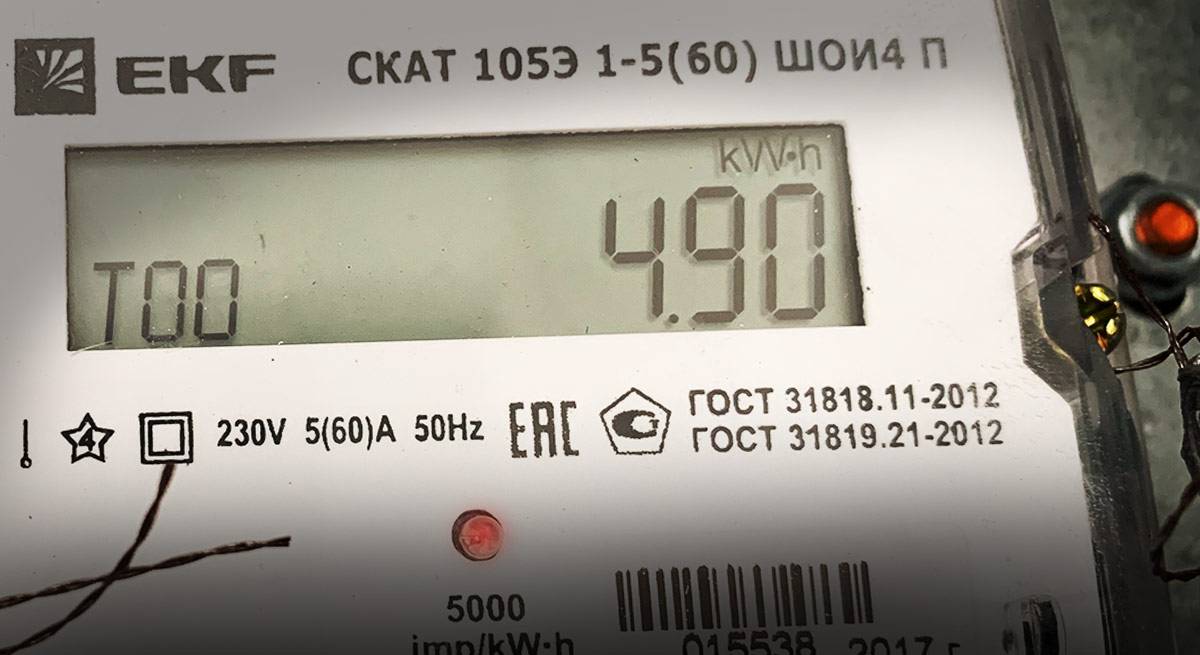 Стоит понимать, что любое электронное устройство питается не святым духом и электросчётчик не исключение. Тут стоит сказать пару слов о самом счётчике. У меня установлена не самая популярная модель счётчика EKF СКАТ 105 Э1-5 (60) ШОИ4 П — однофазный, электронный, многотарифный.