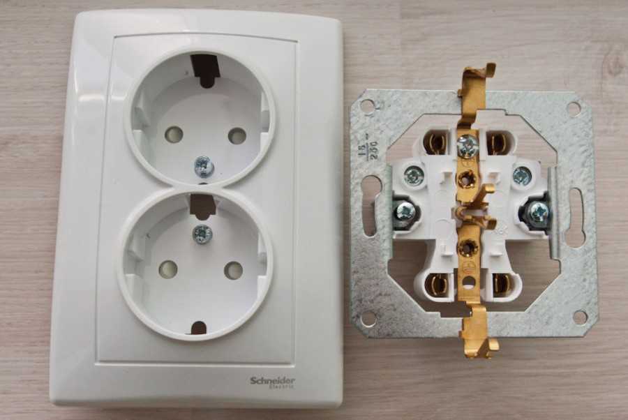 Когда схема подключения на двойную розетку правильно определена, место выбрано, а материалы подготовлены, можно приступать к монтированию.