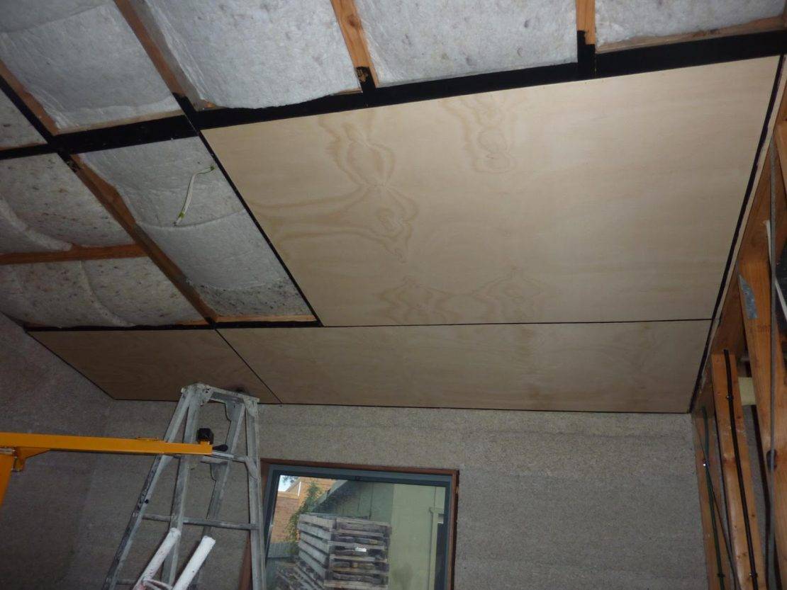 Подшивка чернового потолка фанерой