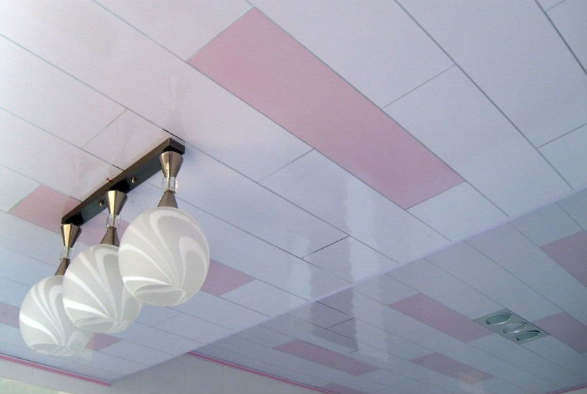 Отделка потолка пластиковыми панелями даёт возможность не обращать внимания на неровность поверхности потолка. Если видны трубы или проводка, панели их надёжно замаскируют. Правда, съедят до полутора сантиметров высоты комнаты.