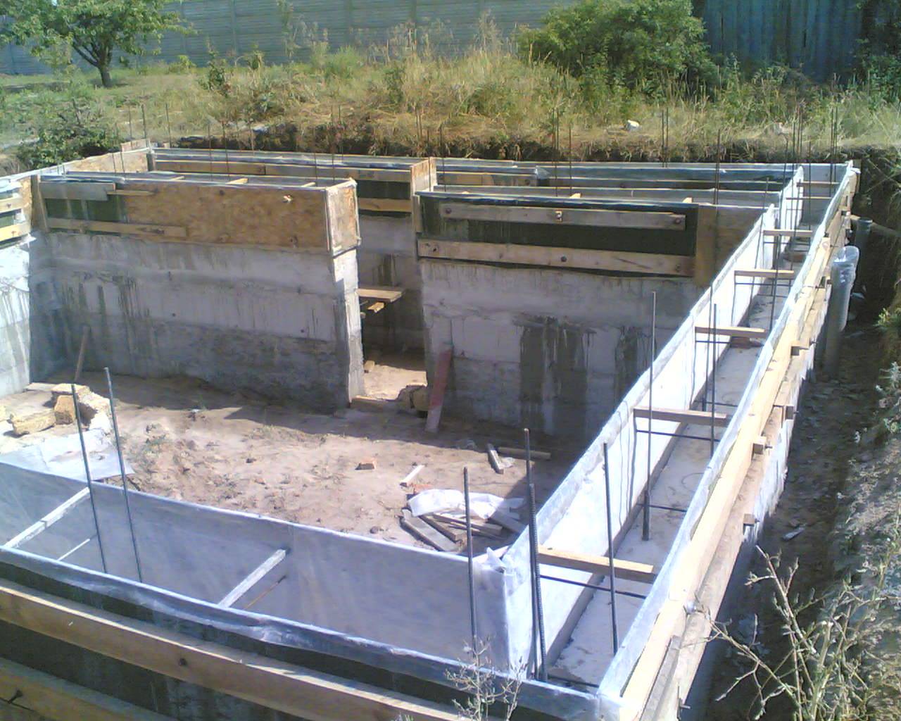 Дальнейшее строительство выполняется в зависимости от проекта – возводится цоколь и укладывается перекрытие первого этажа, либо выполняется вход в погреб.
