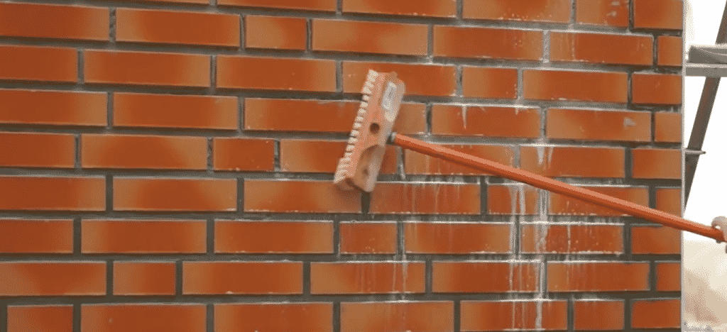 - Кирпич плохо воспринимает покраску. Для повышения адгезии поверхность грунтуют. Раствор наносят на стену в 3 слоя.