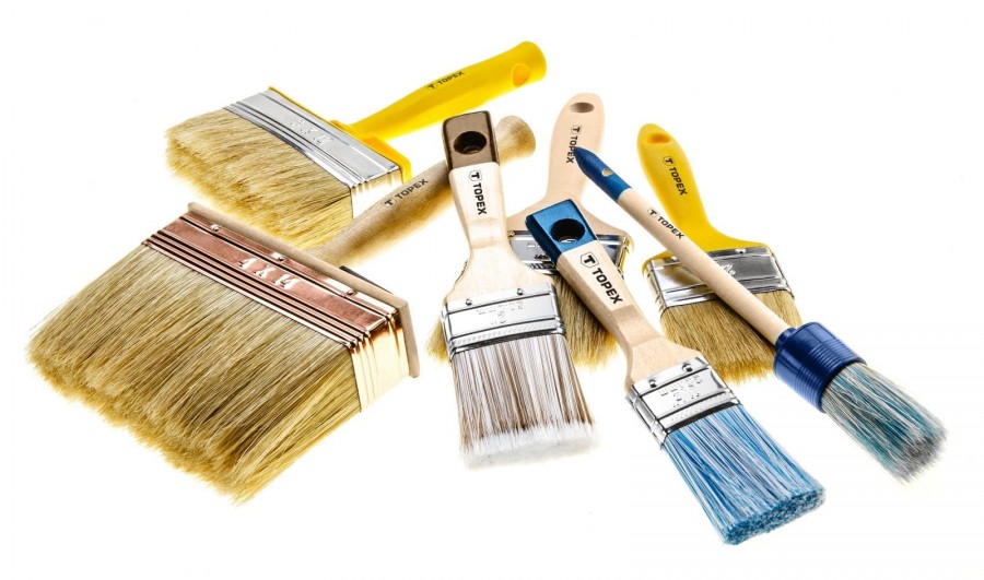 - Малярные кисточки. Пригодятся в том случае, когда до определенных мест невозможно добраться при помощи валиков. Не стоит использовать те малярные кисточки, которые имеют самую низкую стоимость. Потому что ворс, которые будет от них отделяться, испортит поверхности стен.