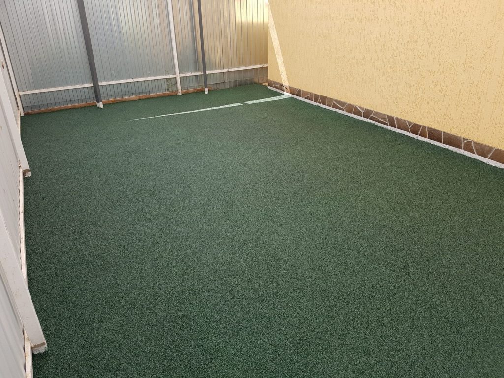 - Составное покрытие из резиновой крошки – выпускается как в виде рулонов, так и в виде сыпучего материала. В первом случае, фиксация производится на клей, во втором – с помощью термического воздействия, резиновая крошка расплавляется и образует цельнолитой неразрывный слой. Срок бесперебойной эксплуатации, также, как и в предыдущем варианте, достигает 20 лет.