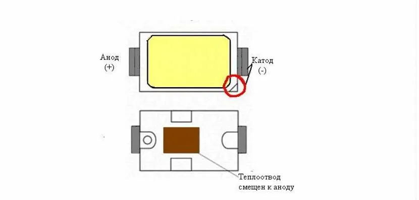 Способ определения полярности светодиода типа SMD Источник userapi.com
