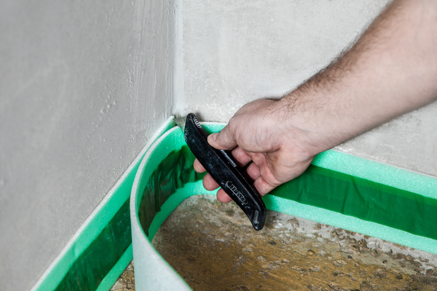 Если в помещении нет порога, для того чтобы самонивелир не вытекал из него, необходимо сделать преграду, например, кусок гипсокартона поставить на монтажную пену