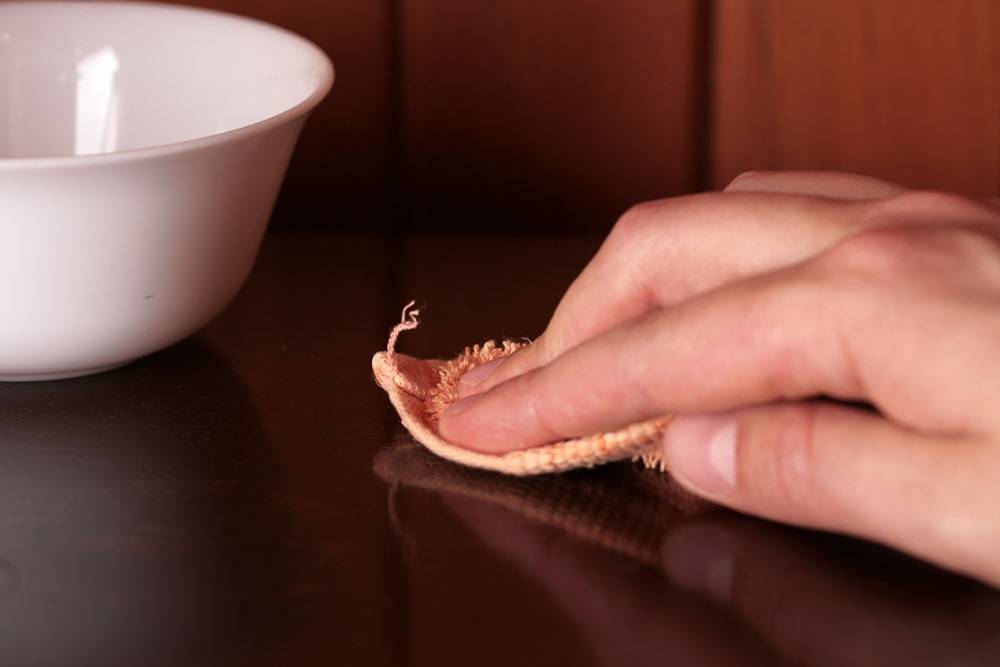 - Намочив сухую чистую тряпку, протрите поверхность мебели.