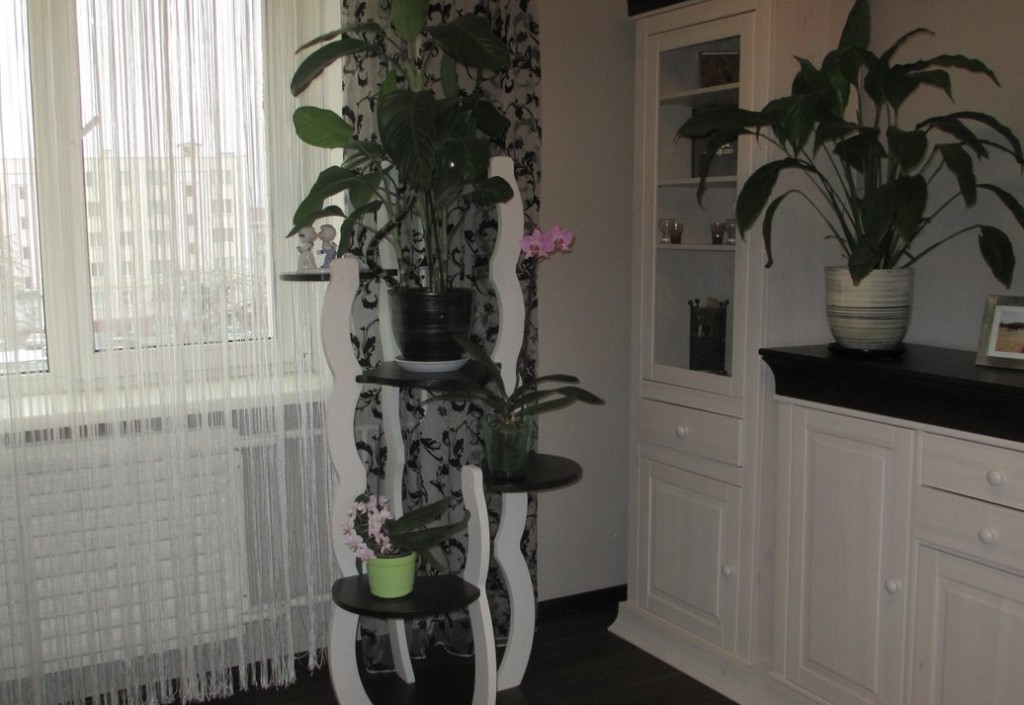 В комплект к подвесным можно сделать напольные полки, которые прекрасно впишутся в интерьер. Полка деревянная для цветов. Ручная работа