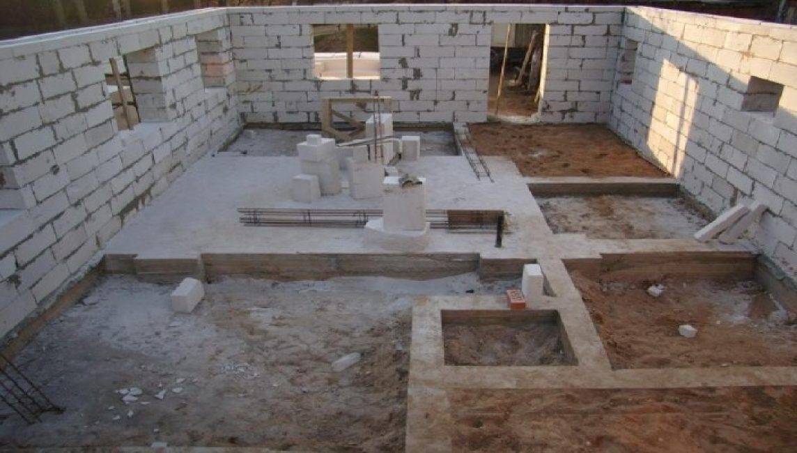 Так как подобный вид основания не является несущим, опирание на него тяжелых печей, кирпичных перегородок и массивных лестниц крайне не рекомендуется. В этих случаях в качестве основания под внутренние стены используют ленточный фундамент.