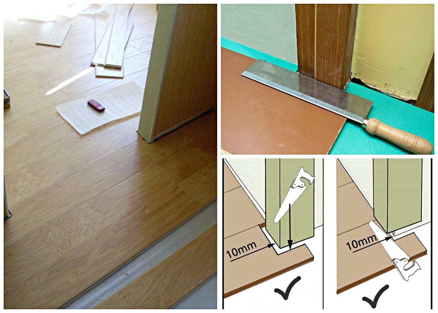 Монтаж ламината возле дверей и труб
