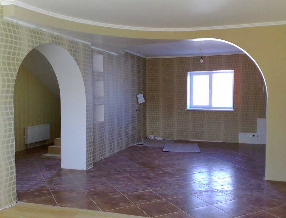 После того как старая отделка удалена, осуществляют замену окон и входной двери (при необходимости). На основании составленного проекта демонтируются и возводятся перегородки, заделываются и создаются проёмы для арок и межкомнатных дверей. Следует запомнить, что в первую очередь всегда выполняются самые грязные работы.