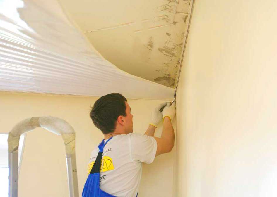 , после поклейки обоев или покраски стенных поверхностей. Установку потолка можно считать чистовым мероприятием, не несущим угрозы повреждения покрытию пола или стен.