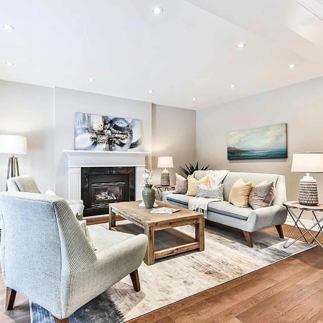 Сочетание центрального светильника в гостиной и нескольких точечных светильников по периметру часто работает хорошо и создает эффект усиленного освещения. Различные типы освещения могут также хорошо дополнять друг друга с точки зрения дизайна.