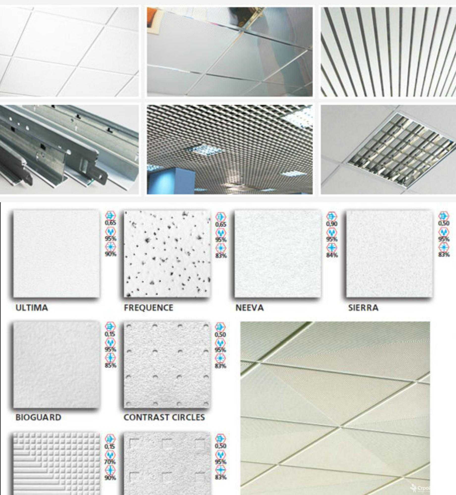 Этот тип потолка является универсальным, его можно найти в любом общественно-административном здании, больнице, офисе или супермаркете. Вот несколько фотографий: