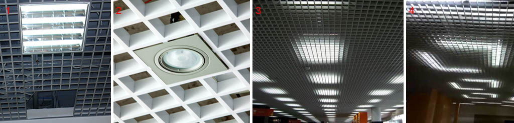 - Возможность устройства разнообразных оригинальных систем освещения. Светильники для потолка грильято могут быть установлены за потолком или встраиваться в потолочную решётку. Это позволяет создавать различные световые композиции, эффекты и узоры. Приборы могут быть точечными, галогенными, люминесцентными или светодиодными.