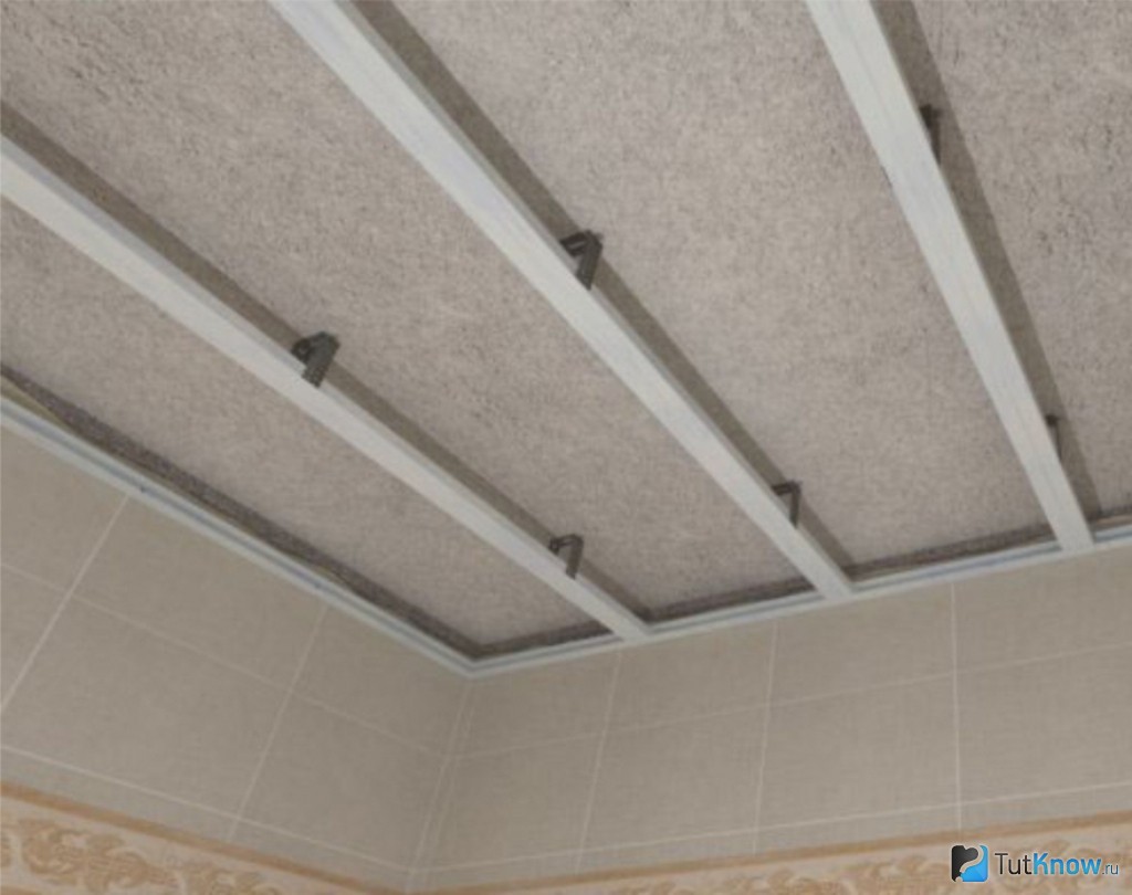 - при утеплении пространства между каркасом и потолком минеральными материалами расстояние между профилями должно быть меньше чем размер материала на 2 см.