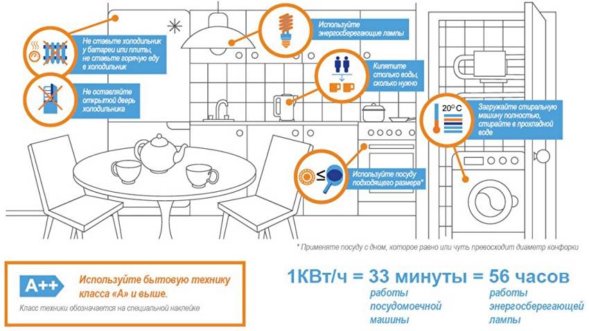- Выбирать бытовую технику с высоким классом энергопотребления и низкой мощности.