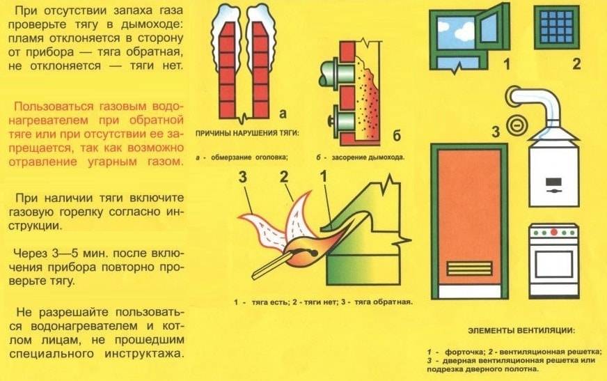 - Использовать газовую колонку при отсутствии или недостаточности тяги, а так же при обратной тяге;