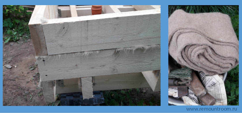Внутри, каркасная конструкция обязательно наполняется утеплителем – теплоизоляционным материалом. В качестве наполнителя применяется пенополистерол, базальтовая вата, опилки и т.д.