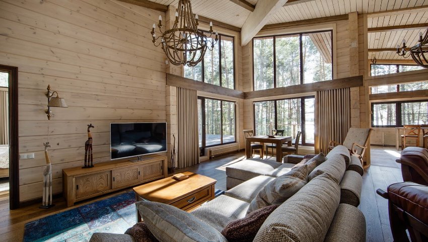 - Здание как снаружи, так и изнутри отделывается плотными материалами не только в декоративных целях, но и для повышения тепло- и шумоизоляции. Это полностью перекрывает все возможные щели между венцами.