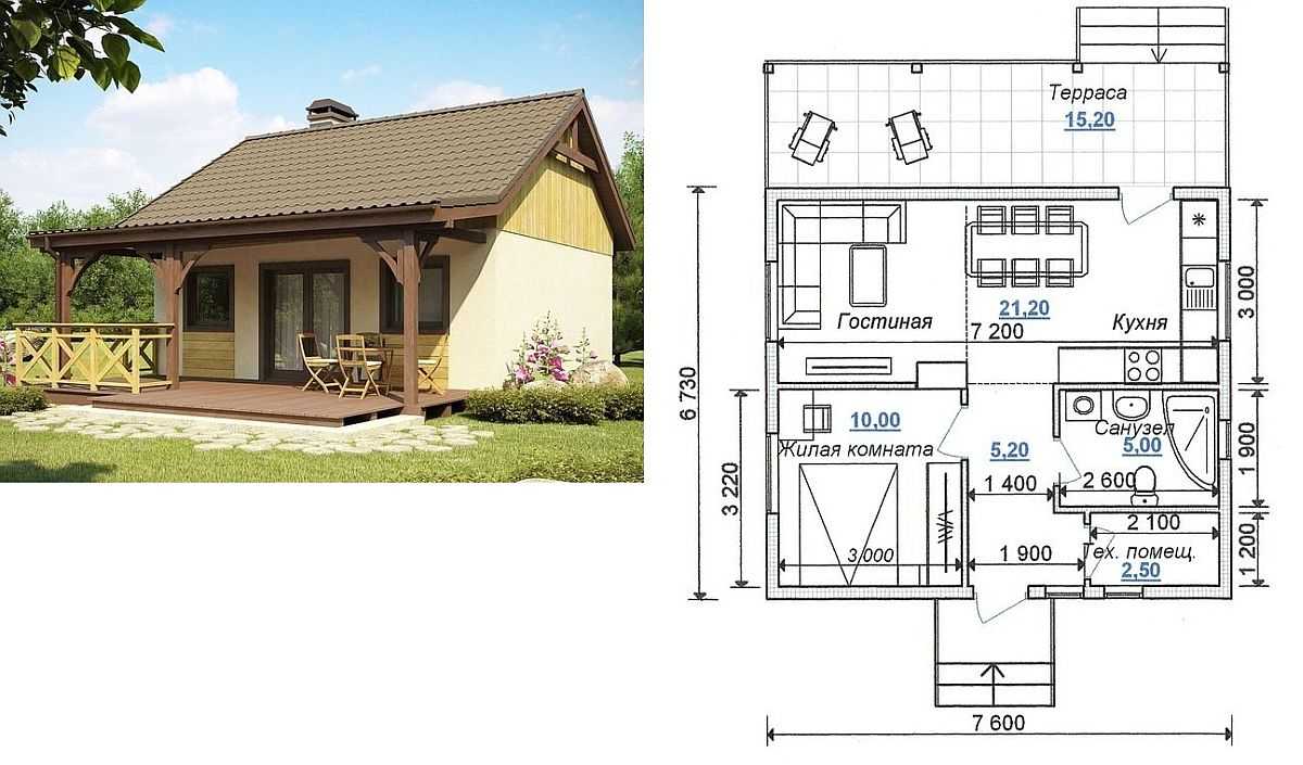 Одноэтажный дом 7*7,5 с пристроенной террасой