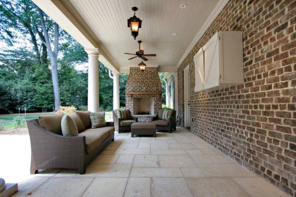 - Веранда кирпичная (камень, пеноблок). Самый прочный вариант. Для тяжелой пристройки понадобится прочный фундамент, такой же, как под домом. Это убережет веранду от разрушения.