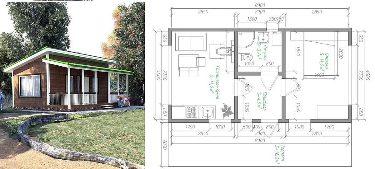 Небольшой деревянный загородный дом 4 * 4 – очень простой проект