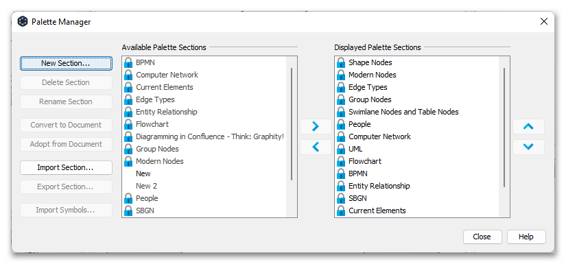 Вероятно, не всем удобно пользоваться программным обеспечением на английском языке, но в случае с yEd Editor особых проблем быть не должно, так как это легкий софт, который использует только самые простые, но мощные инструменты. Шаблонов здесь нет, но есть объемная палитра, которая содержит узлы и ребра, используемые при построении диаграмм практически любых типов. Палитру эту можно гибко настраивать, например скрывать лишние разделы, создавать новые, менять содержимое текущих библиотек, импортируя объекты в форматах GraphML и SVG.