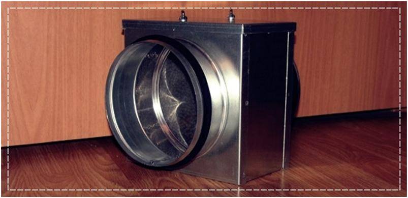- Шумоглушитель. Предотвращает прохождение звука от функционирующего вентилятора по воздушному каналу. Производится из звукоизоляционных материалов, таких как минвата, стекловолокно.