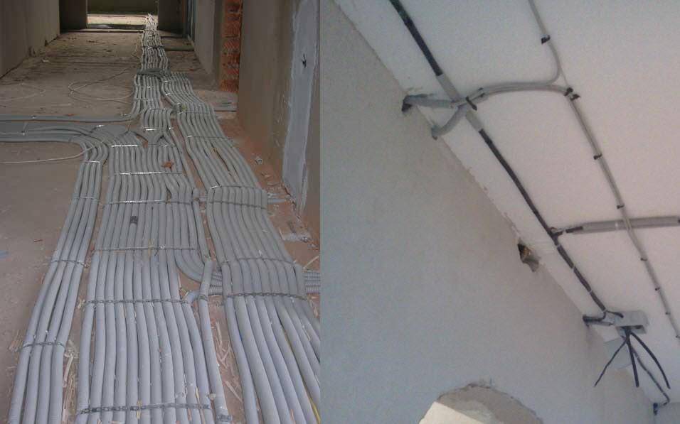 В домах и квартирах используется скрытая электропроводка, которая идет под штукатуркой или в трубах внутри стен, потолков и полов.