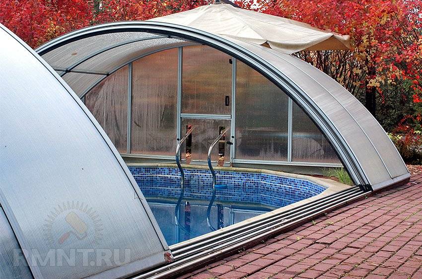 Помимо перечисленных выше вариантов, можно сделать кровлю в виде купола, арки, полуарки — преимущество полимера в том, что он очень пластичен и универсален, и это позволяет реализовать практически любое решение по обустройству кровли.