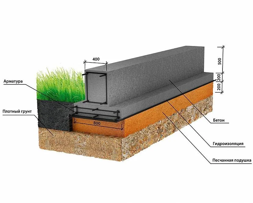 Чтобы узнать массу, которую будет иметь ленточный фундамент, необходимо определить такие значения: