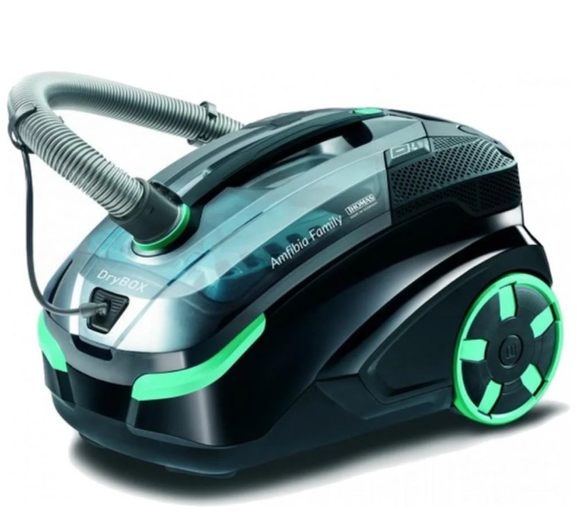 Модель Thomas DryBox Amfibia отличается ценой выше среднего бюджета, но при этом вполне оправдывает свою стоимость. Все дело в качественном аквафильтре, который прекрасно очищает воздух. Агрегат рассчитан на сухую и влажную уборки, при этом он способен мгновенно очистить даже самые капризные поверхности с минимальными трудовыми затратами.