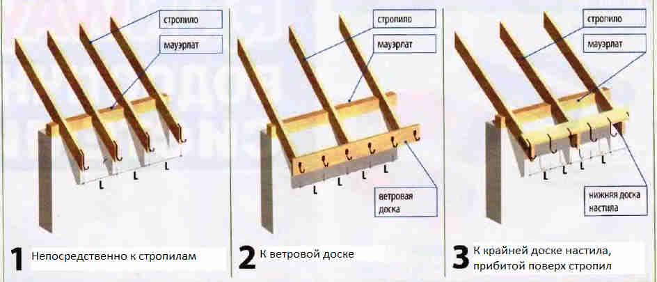 Для крепления лучше использовать универсальные металлические кронштейны для водостока. Их можно согнуть под любым углом, соответствующим наклону вашей кровли.