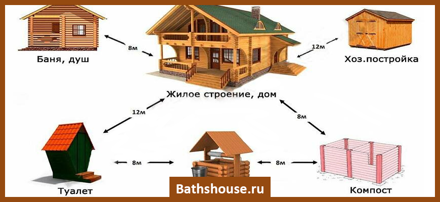 Дистанция между баней и водоёмом определяется следующими нормативами: