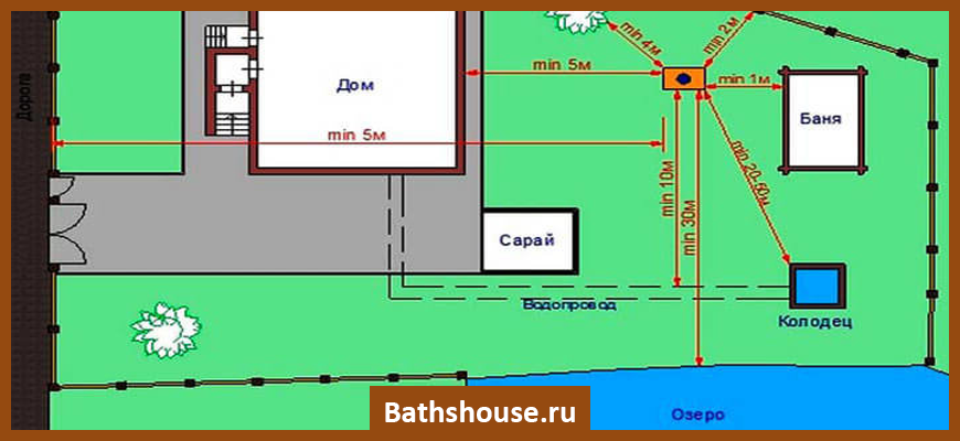 Особенно важно соблюдать дистанцию между баней и источником питьевой воды