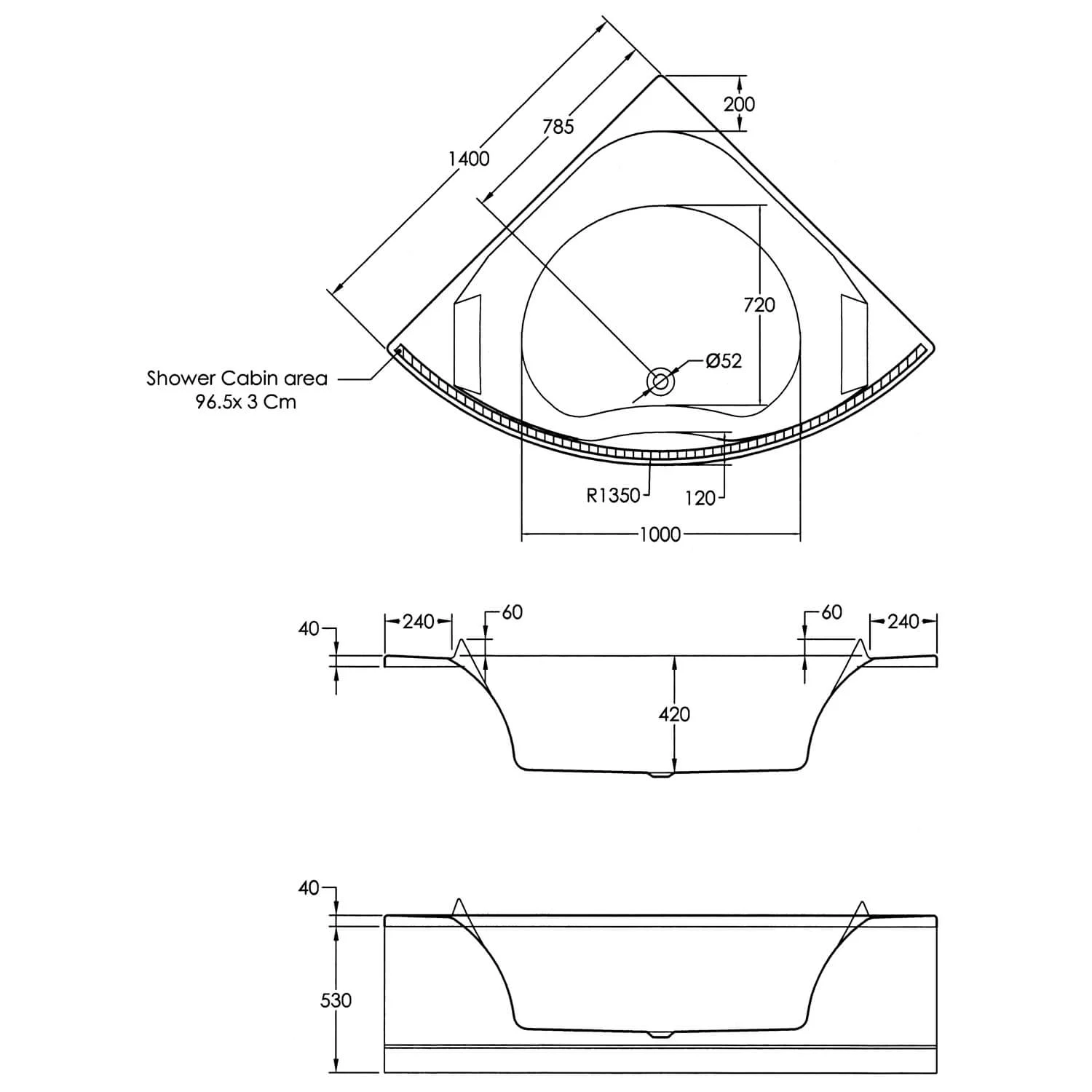 - Небольшие устройства (135×135). В сравнении со стальными и чугунными конструкциями, такая ванная является более вместительной. В ней могут комфортно совершать водные процедуры люди практически любой комплекции. Но такие устройства можно установить уже не во всяком помещении, поскольку они занимают немало места;